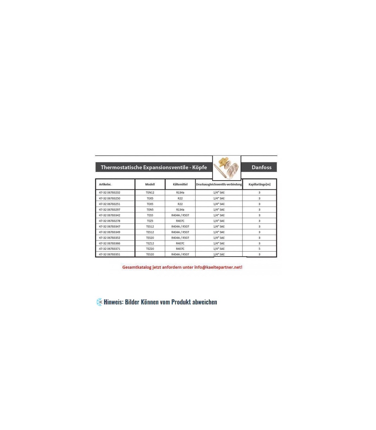 Thermostatisches Element TEZ 20, Danfoss 067B3371, R407C, ohne MOP, Bördelanschluss, Externer Druckausgleich (1/4” Anschluss).