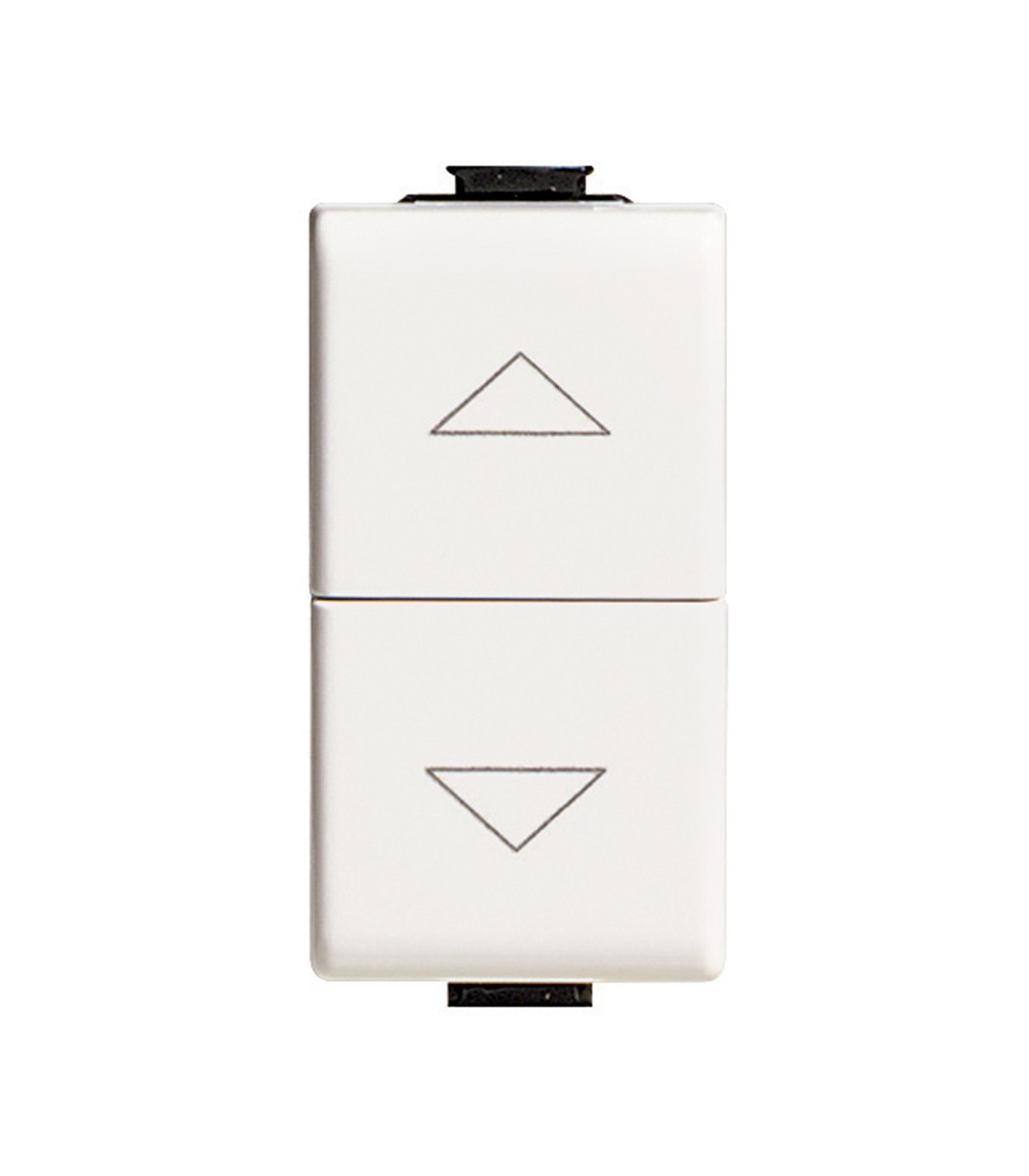 Bticino Matix Umschalter, Farbe Weiß, Doppeltaste (1-0-2) - Normalerweise für die Steuerung der Rollläden verwendet. Die Taste bleibt nach dem Druck gedrückt.