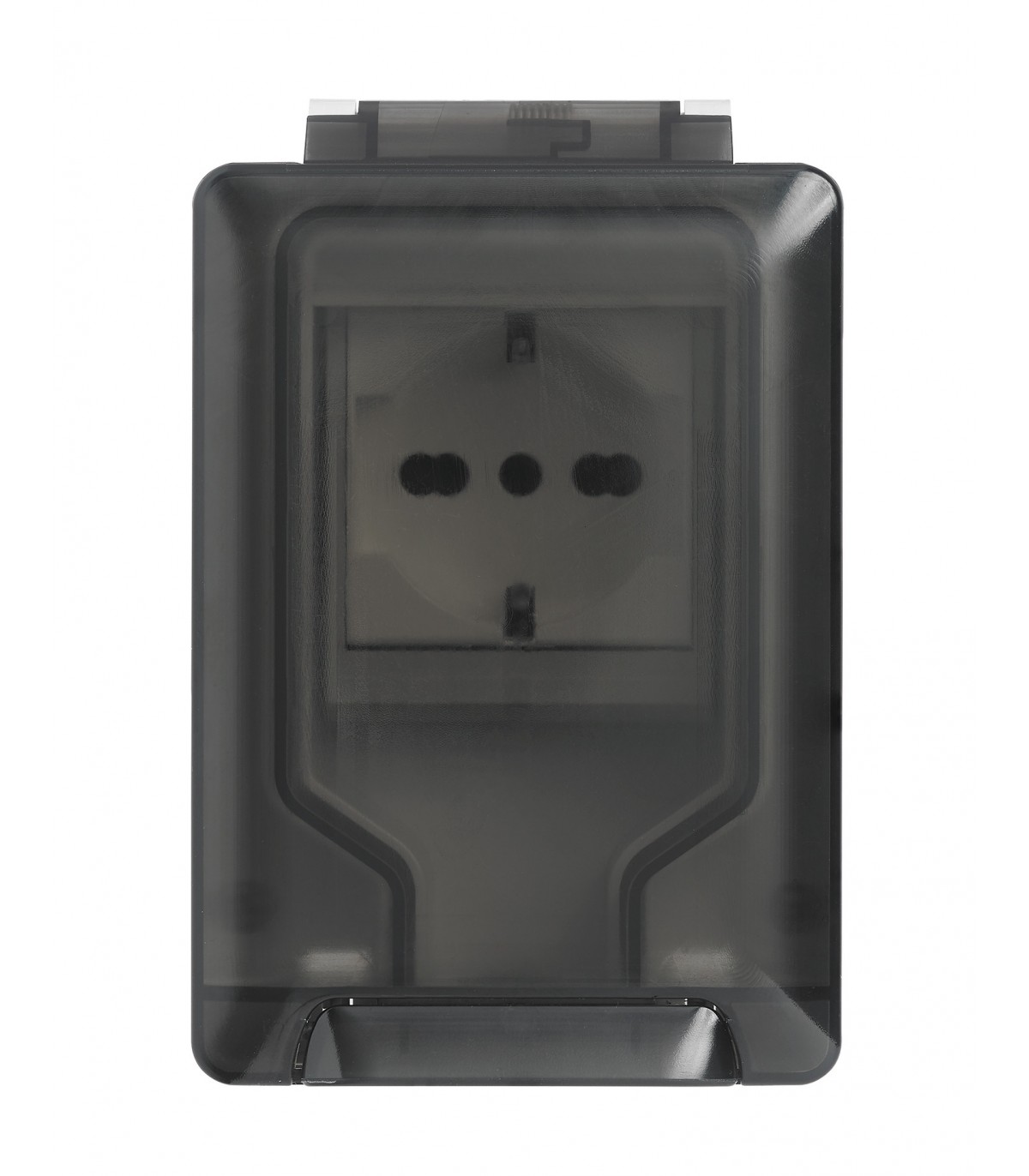 - Vertikal zu öffnende, geräucherte Frontabdeckung, ausgestattet mit einer Feder, die auch bei falschem Schließen zum Schließen neigt