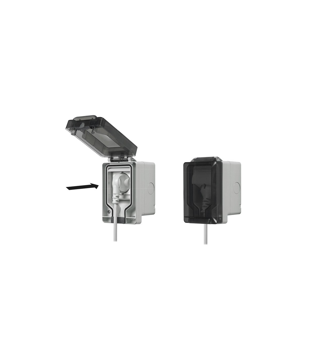 - Wasserdichte Wanddose mit eingestecktem Stecker