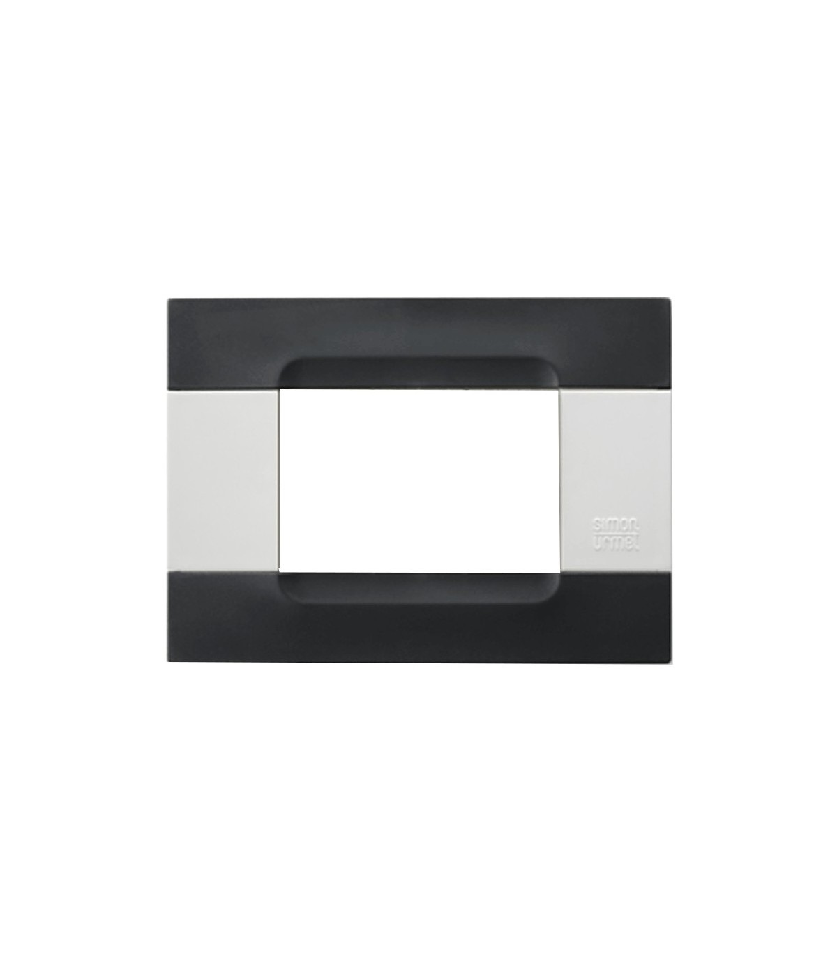 Polychrome Platte Urmet Simon Nea weiß mit horizontalen Kunststoffeinsätzen auckland schwarz, 3 Module. Sie kann nur auf dem Träger 10703N installiert werden.