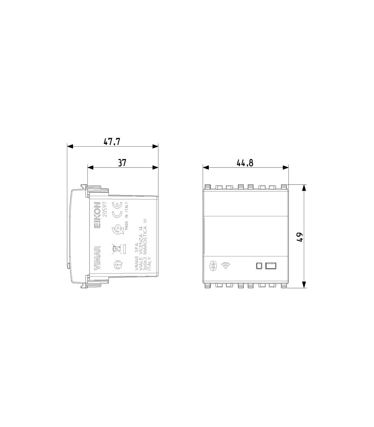 Bluetooth Wi-Fi IoT Gateway Vimar für Eikon Serie, Größe 2 Module, Farbe Grau, für die Integration, Konfiguration, Überwachung von VIEW Wireless, durch Cloud und App für Smartphone, Tablet.