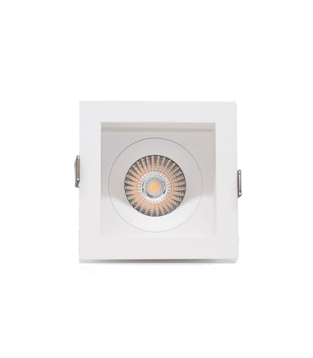 Einbaustrahler Novalux Modell Pix quadratisch weiß Farbe warmes Licht 3000K, zum Einbau in Zwischendecke oder Mauerwerk mit entsprechender Schalung.