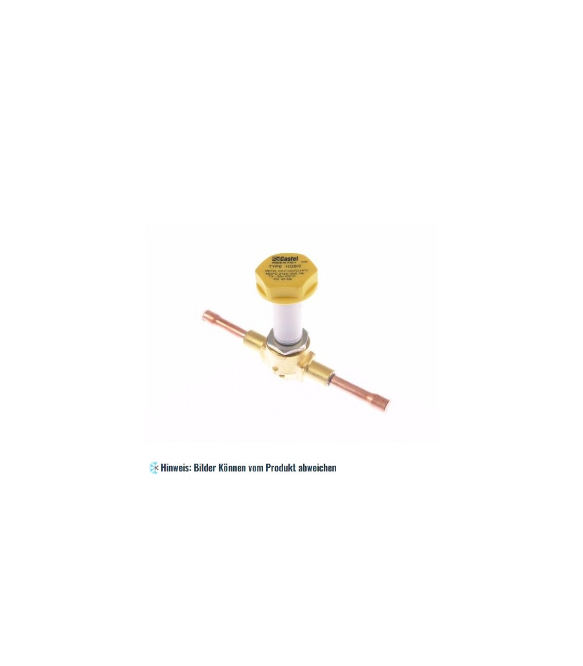 Magnetventil 1028/2 Castel N.G. ohne Spule, CFC, HCFC, HFC, Lötanschlüsse 1/4” (6 mm) ODS, Kv 0.15 m3/h, Temperaturbereich -35°C bis +105°C, PS 45 bar.