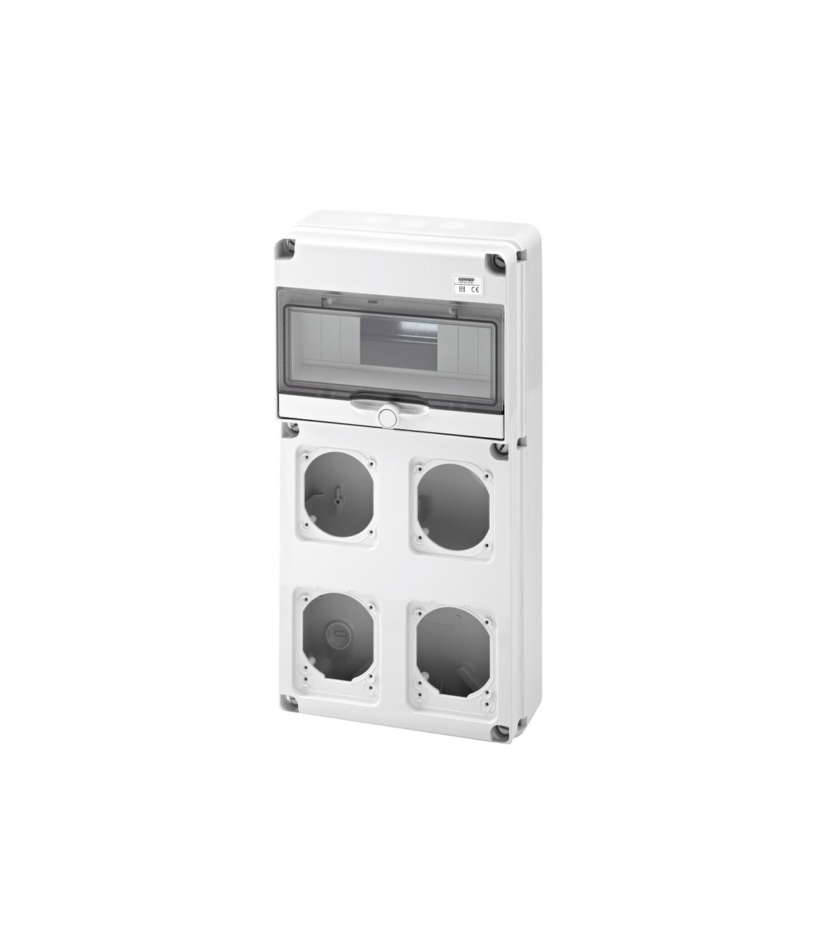 Gewiss-Schaltschrank, 10 Module mit 4 Flanschen für Industriesteckdosen.