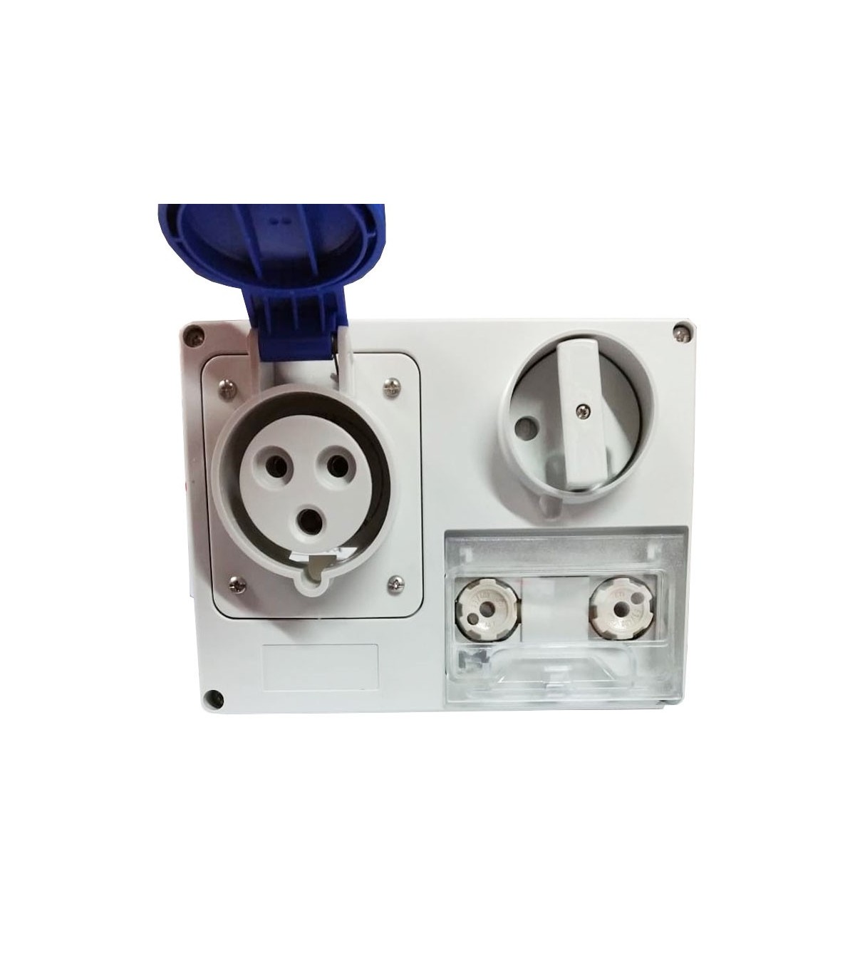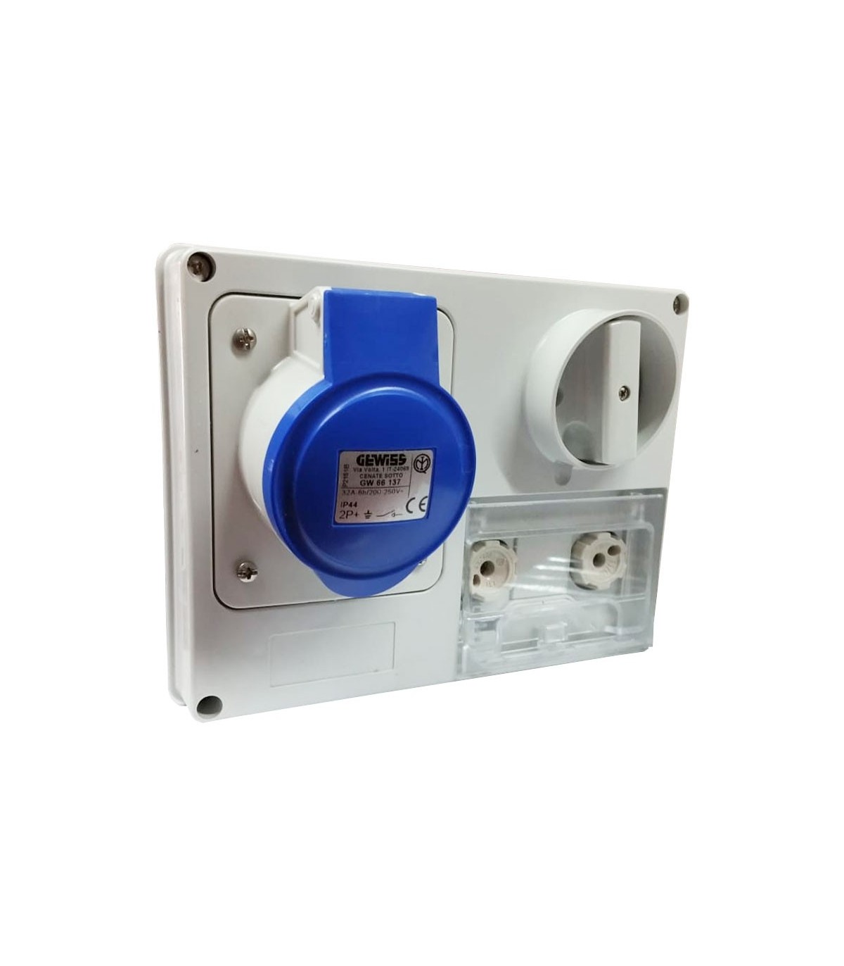 Fest verriegelte Gewiss-Steckdose mit den folgenden Merkmalen: