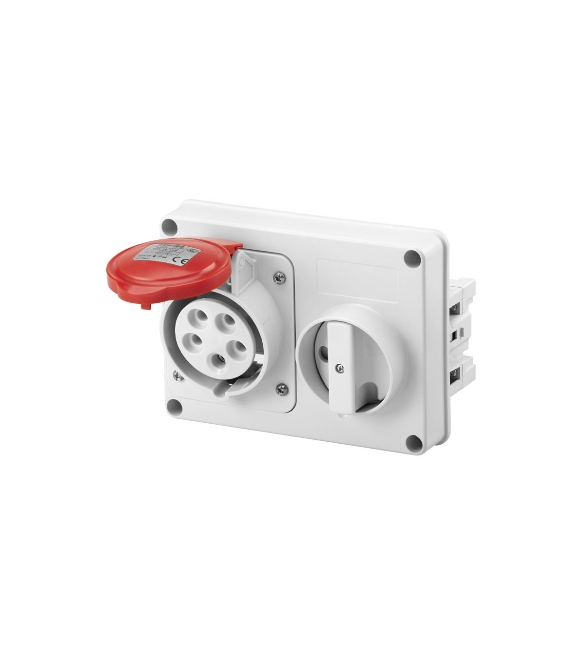 Fest verriegelte Gewiss-Steckdose mit den folgenden Merkmalen: