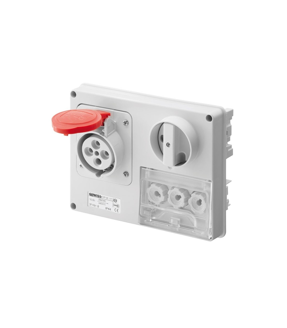Fest verriegelte Gewiss-Steckdose mit den folgenden Merkmalen: