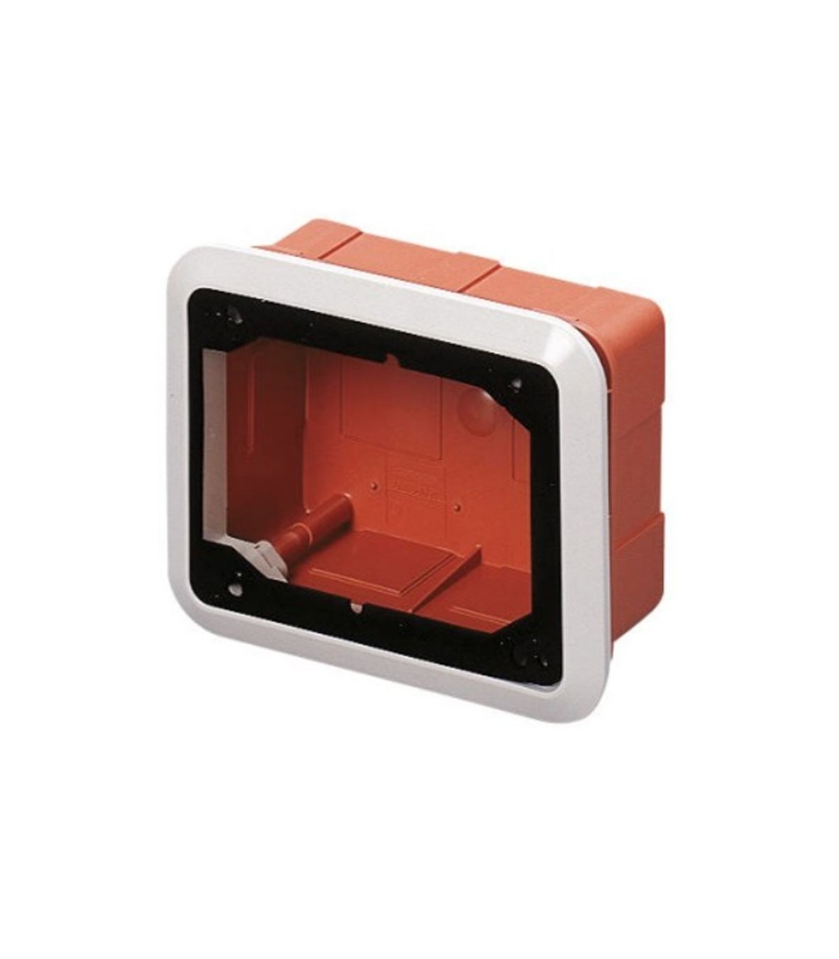 Gewiss-Dose mit Rahmen für eingelassene horizontale feste Steckdosen. Geeignet für Mauerwerkswände.