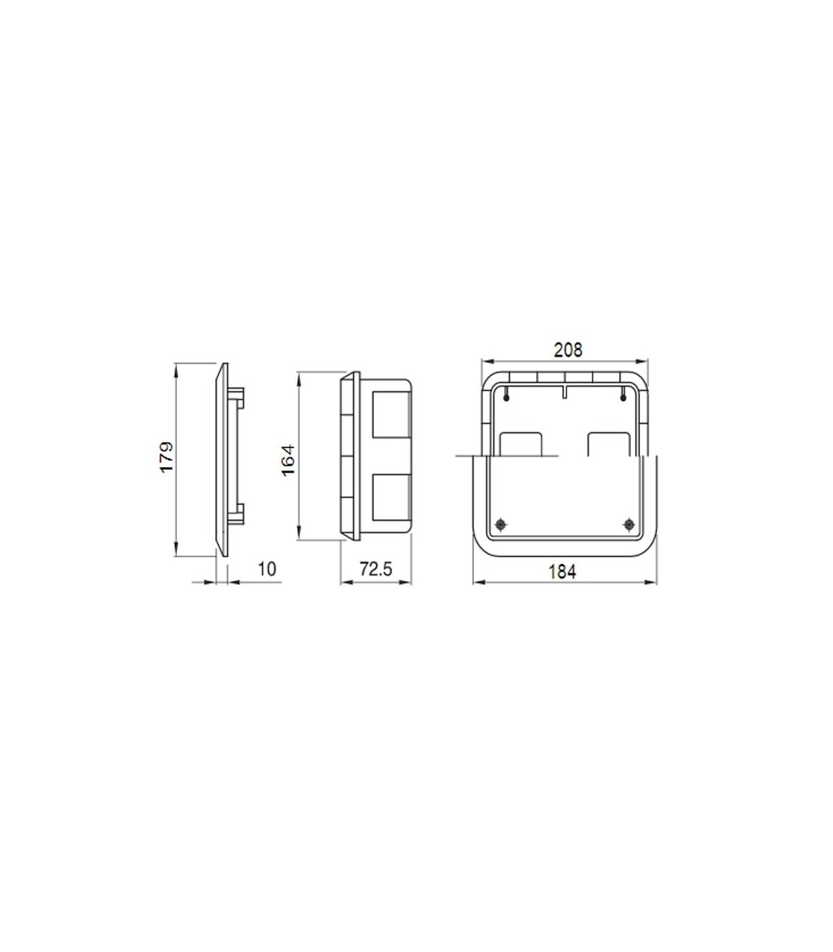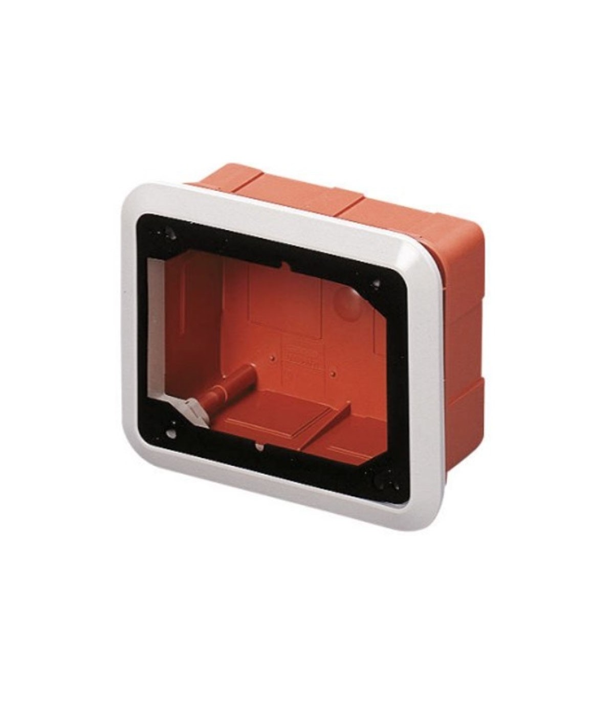 Gewiss-Dose mit Rahmen für eingelassene horizontale feste Steckdosen. Geeignet für Mauerwerkswände.