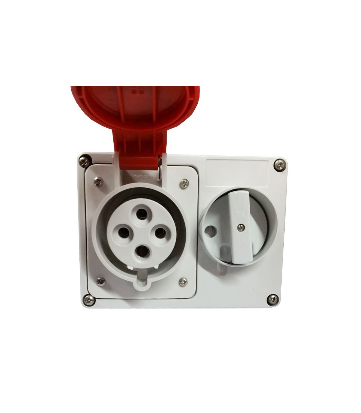 Fest verriegelte Gewiss-Steckdose mit den folgenden Merkmalen: