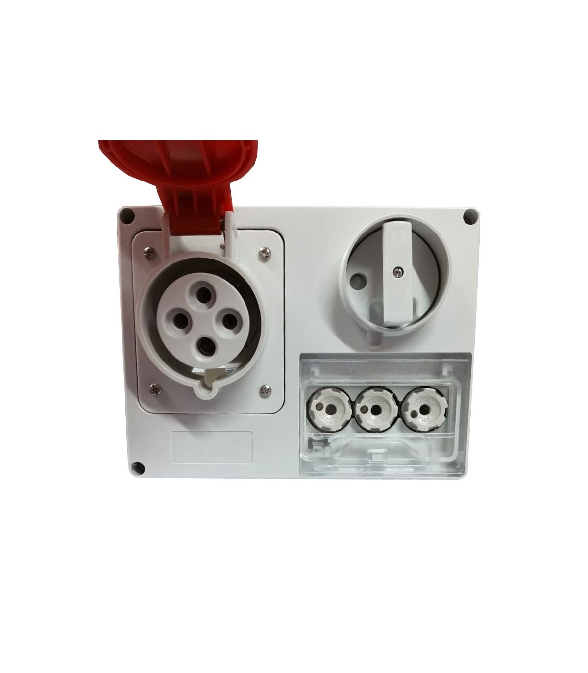 Fest verriegelte Gewiss-Steckdose mit den folgenden Merkmalen: