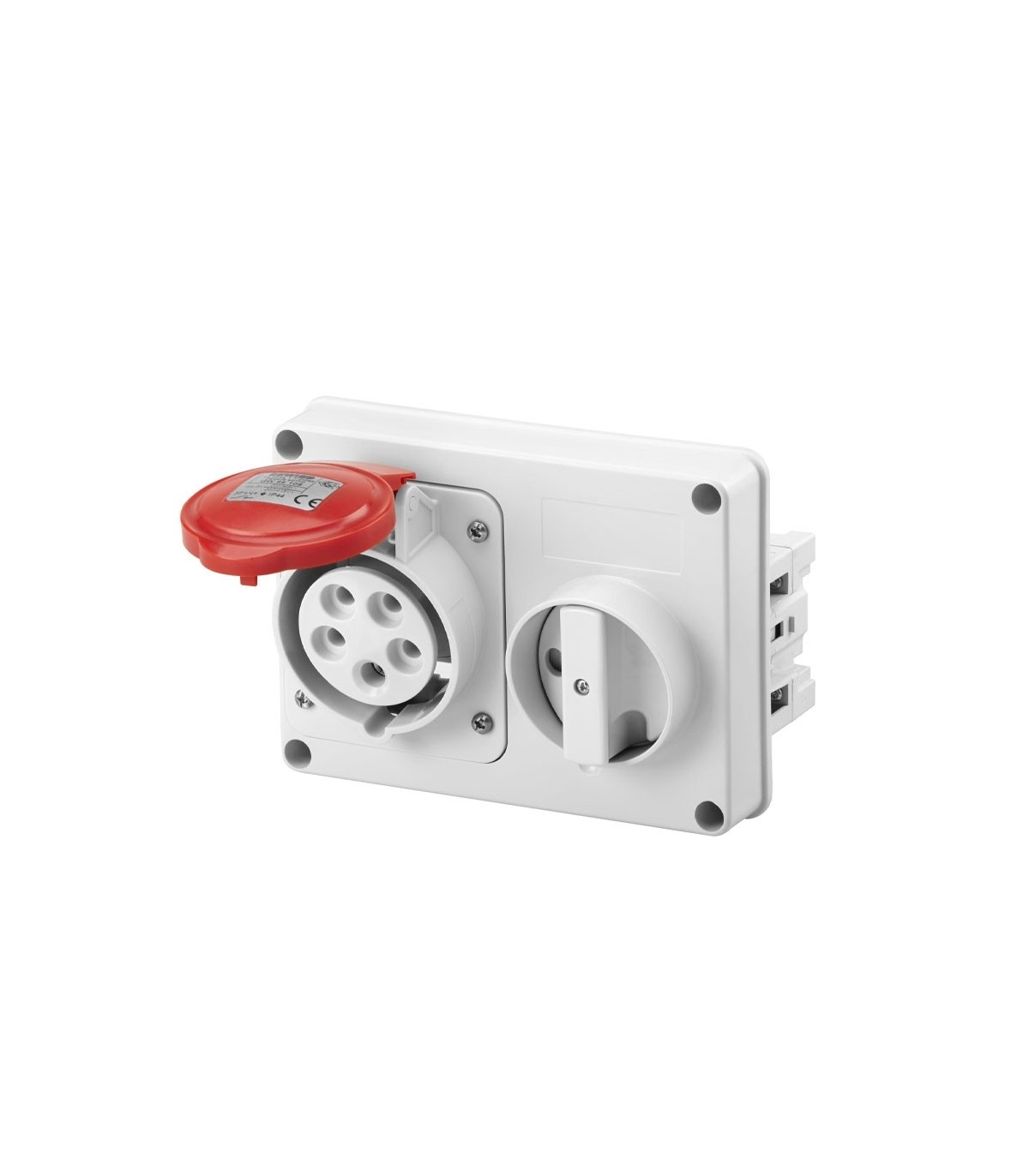 Fest verriegelte Gewiss-Steckdose mit den folgenden Merkmalen: