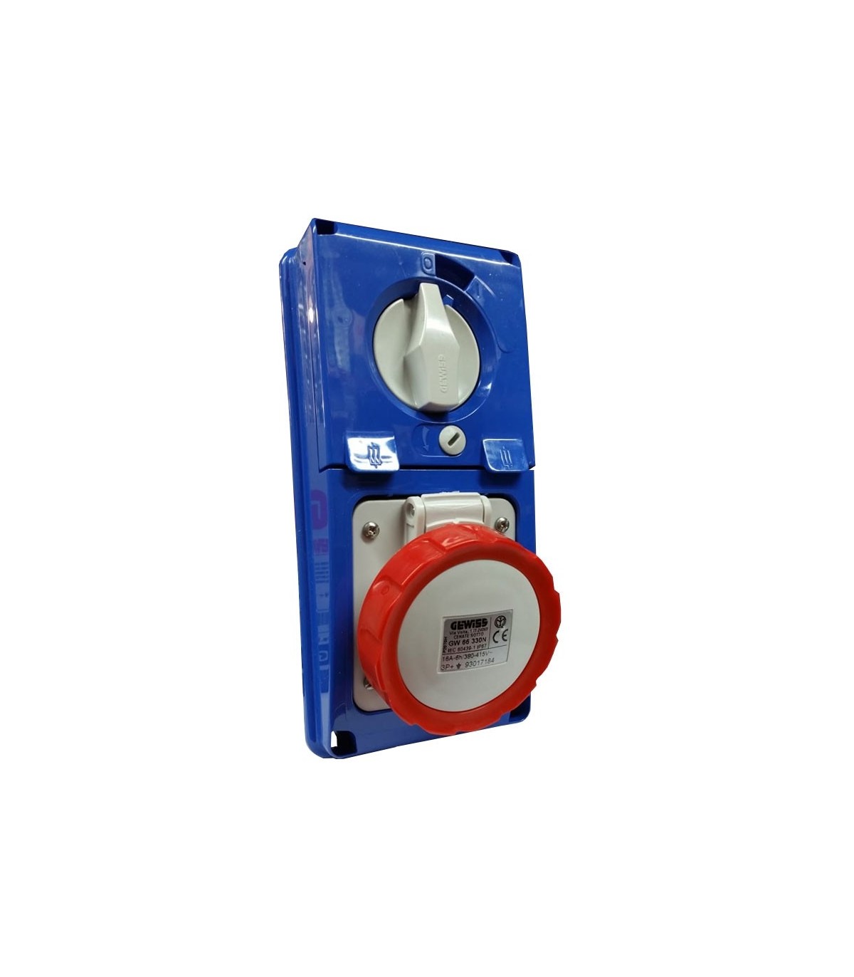 Vertikal verriegelte feste Steckdose von Gewiss mit folgenden Merkmalen: