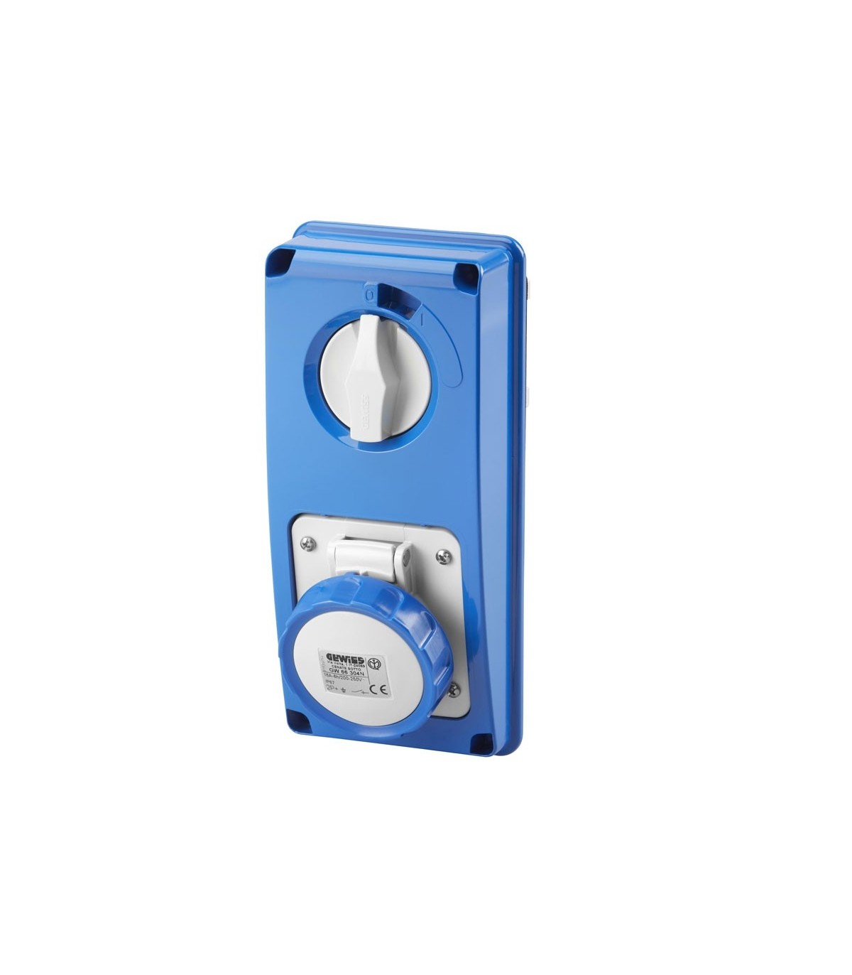 Vertikal verriegelte feste Steckdose von Gewiss mit folgenden Merkmalen: