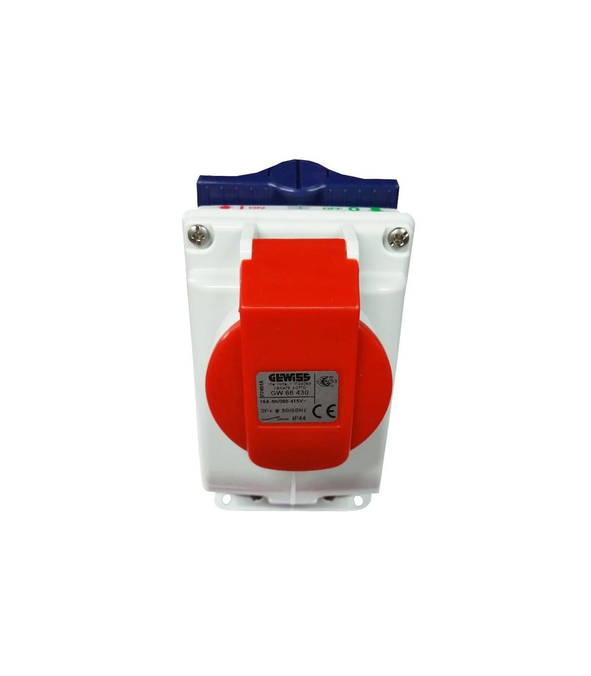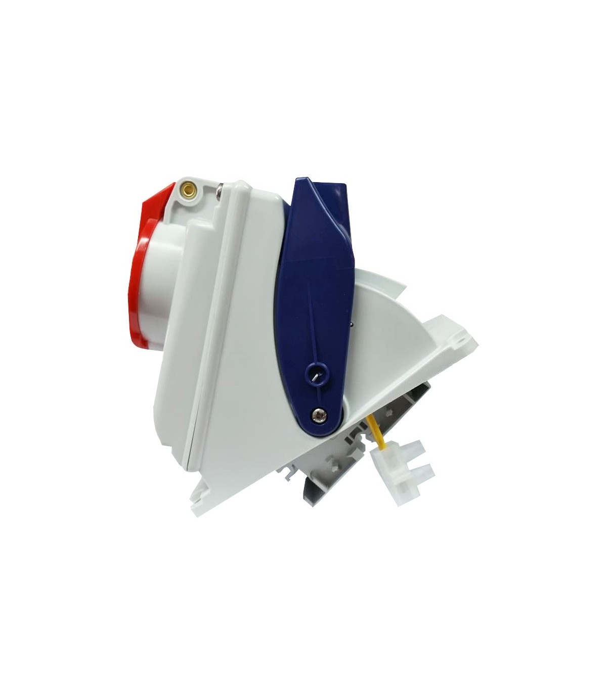 Vertikale, bodenlose, verriegelte Steckdose mit folgenden Merkmalen: