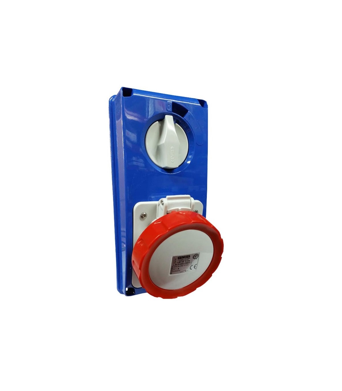 Vertikal verriegelte feste Steckdose von Gewiss mit folgenden Merkmalen: