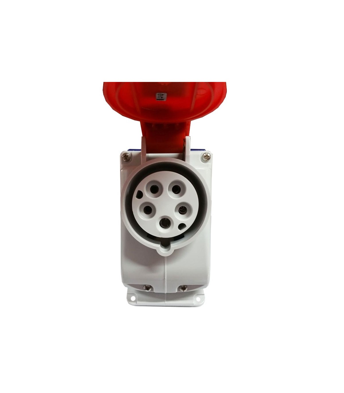 Vertikale, bodenlose, verriegelte Steckdose mit folgenden Merkmalen: