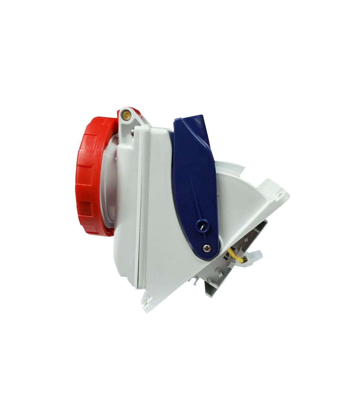 Vertikale, bodenlose, verriegelte Steckdose mit folgenden Merkmalen:
