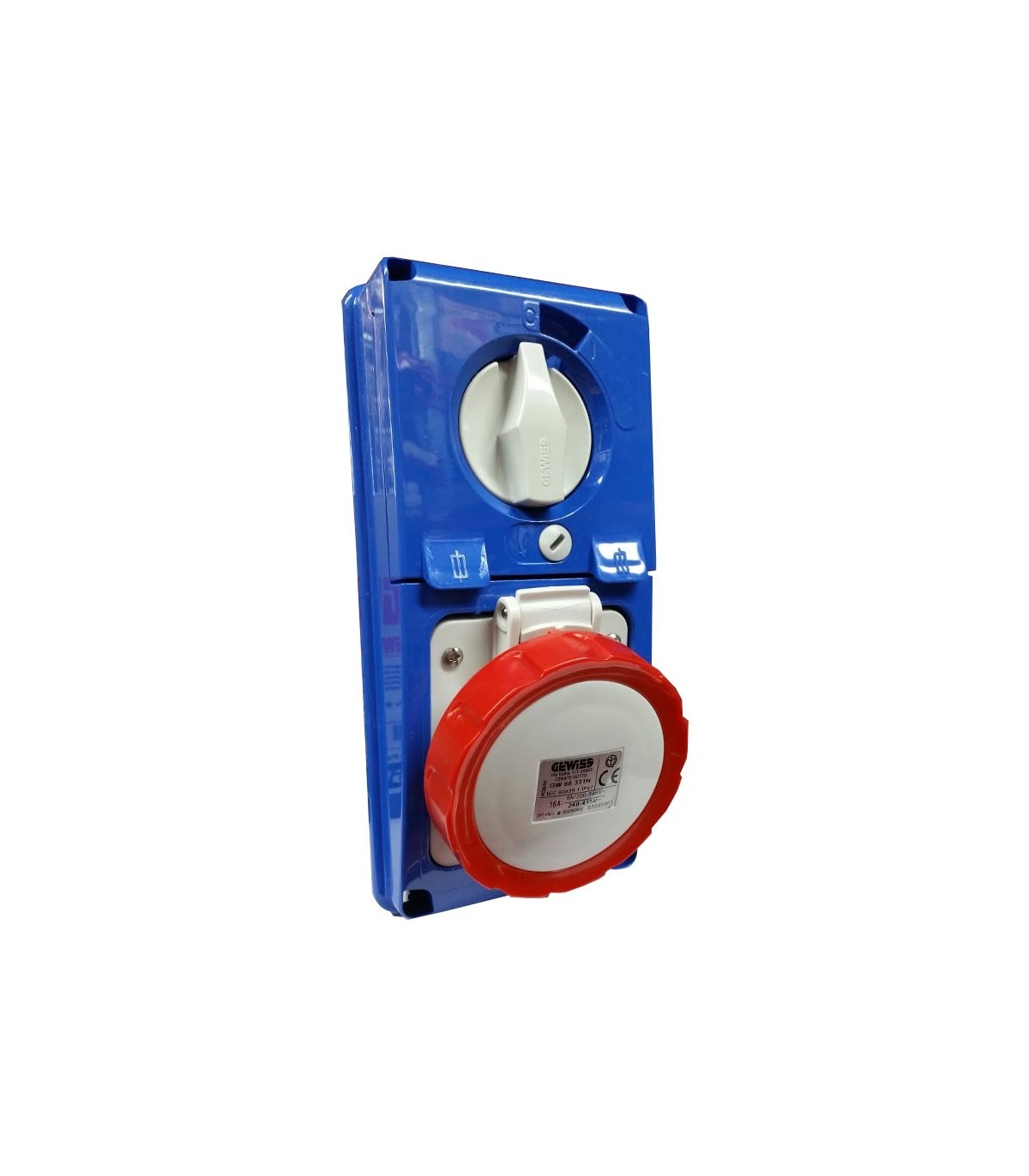 Vertikal verriegelte feste Steckdose von Gewiss mit folgenden Merkmalen: