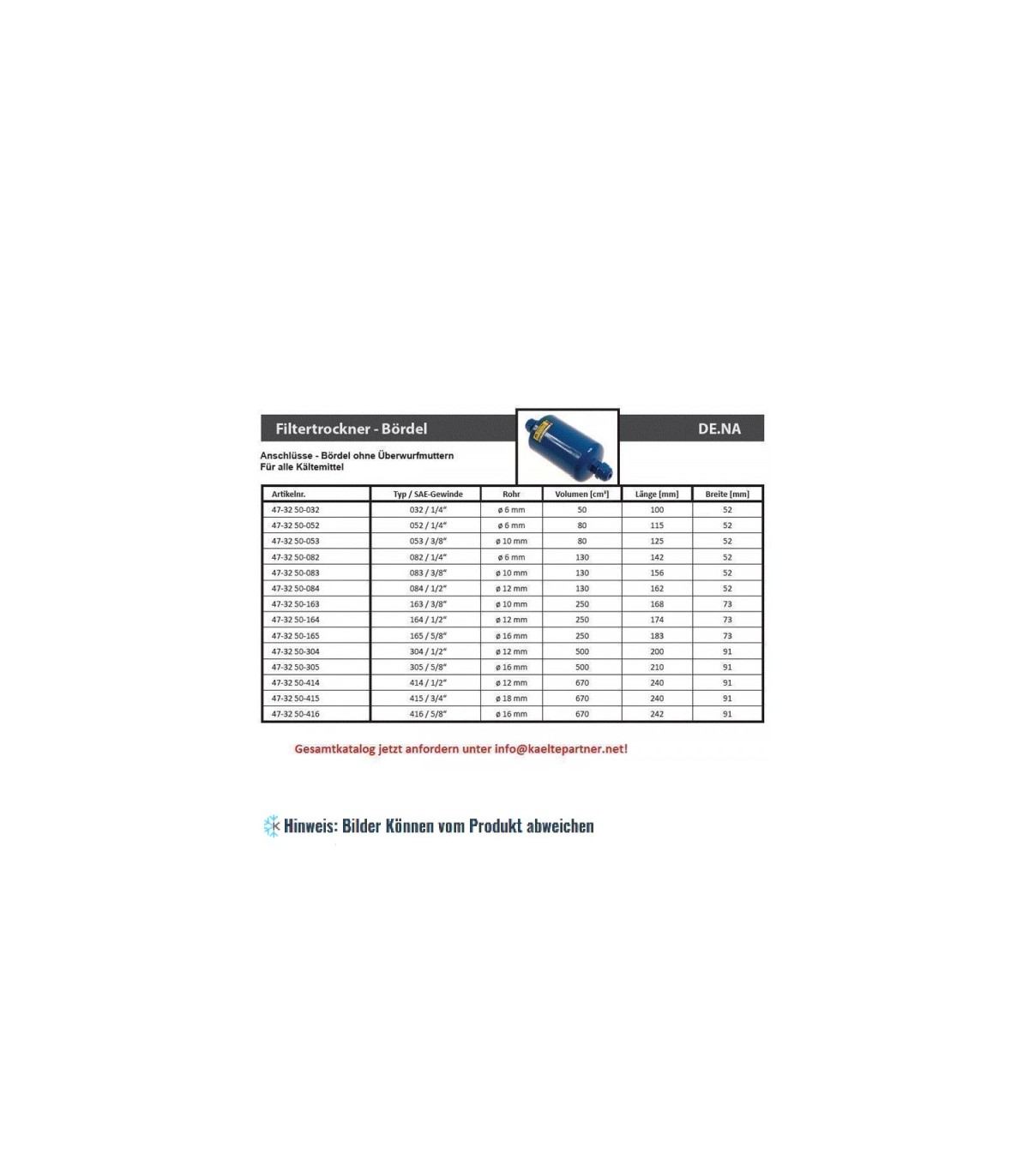 Filterblock-Trockner “MG” 082/MG213 DE.NA, Bördelanschlüsse 1/4” SAE, Volumen 130 ccm, Temperaturbereich -40°C bis +80°C, Betriebsüberdruck 42 bar.