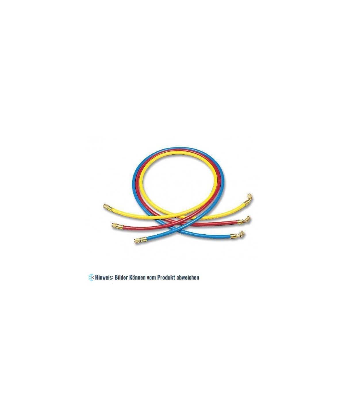 Füllschläuche Set GY 120cm 3 Stück, Anschlüsse gerade x 45° mit Drücker mit blister WIGAM 3GYSA/4-4/48/BRY