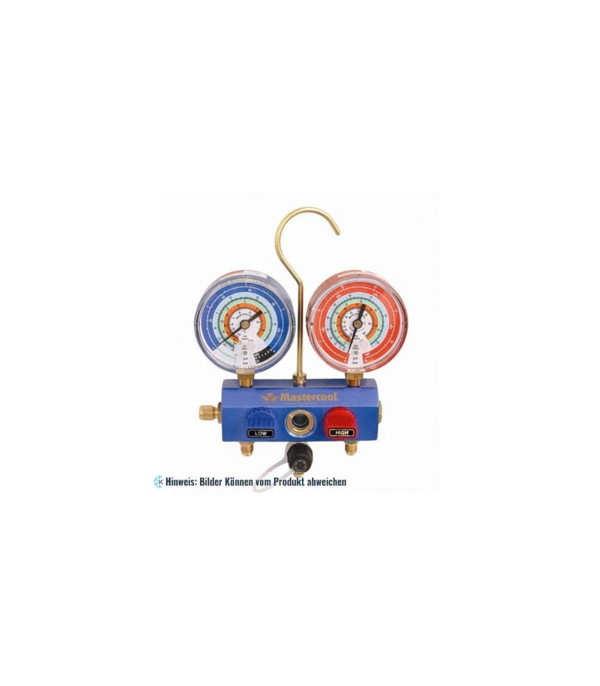 Monteurhilfe-Manometer 2 x 1/4” SAE Anschluss + in der Mitte 1/4” SAE T-Stück mit 3/8” SAE Abzweig withbranch 3/8” mit Schauglas und Kugelventil.
