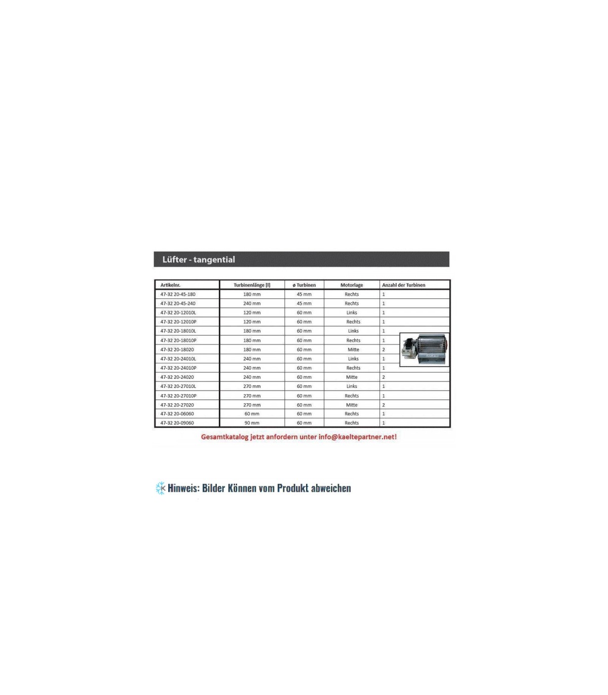 Querstromlüfter Nr.112000, Walzendurchmesser 60x60mm, Spannung 230V/1/50Hz, Motor rechts
