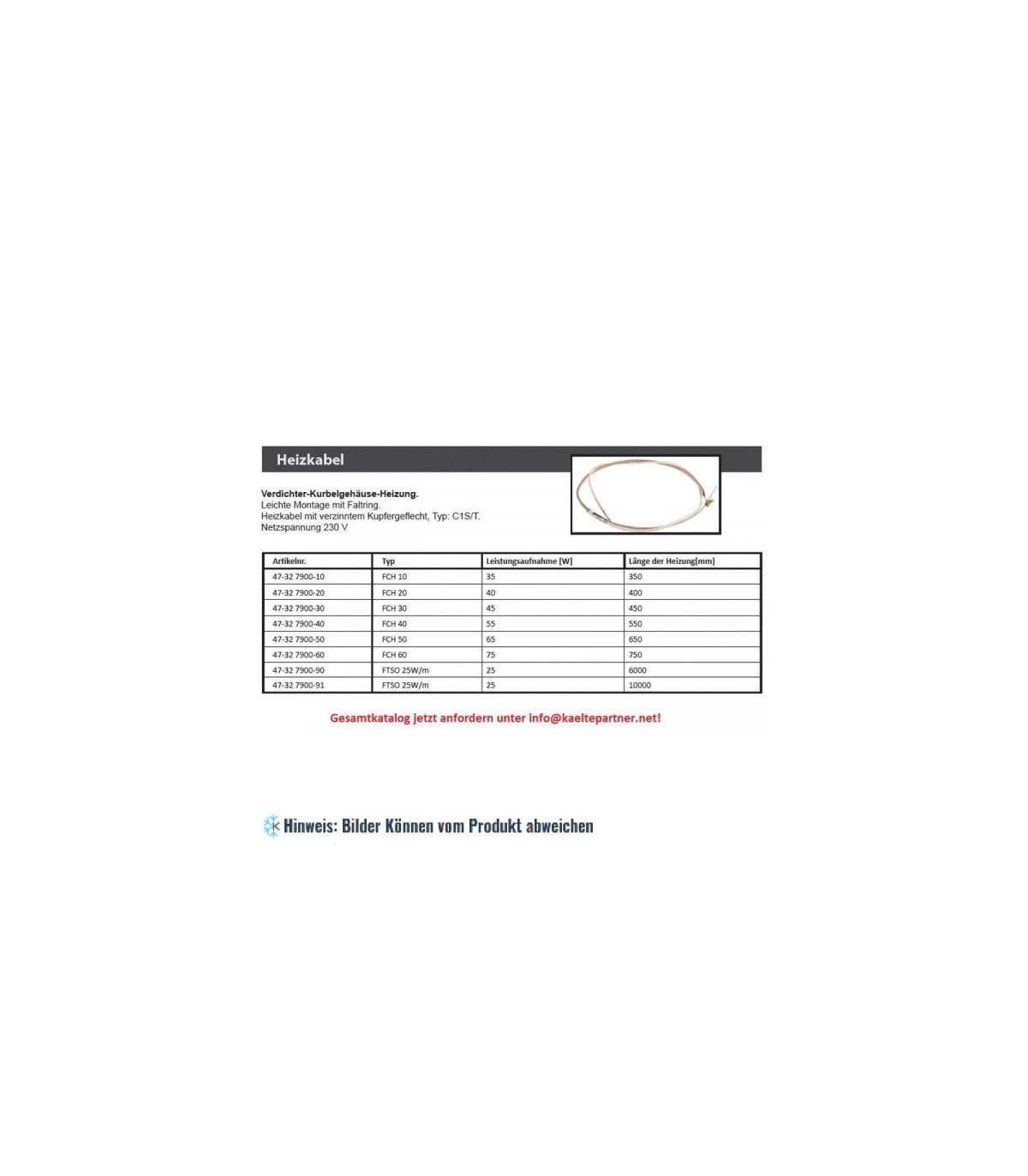 Ölsumpfheizung universal, Leistung 35 W, 230V, Heizteil 350 mm, Gesamtlänge L 580 mm, Minimum eingehüllt d = 120 mm, Maximum eingehüllt d = 175 mm.