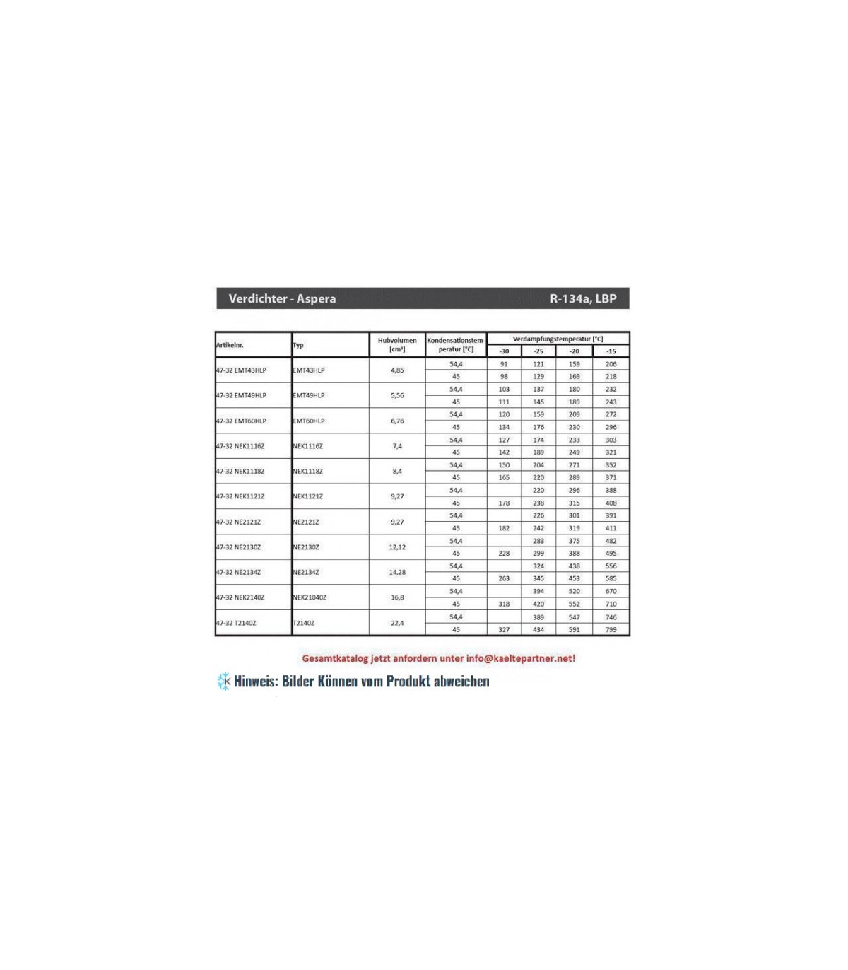 Kompressor Aspera EMT49HLP LBP - R134a 220-240V 50Hz.