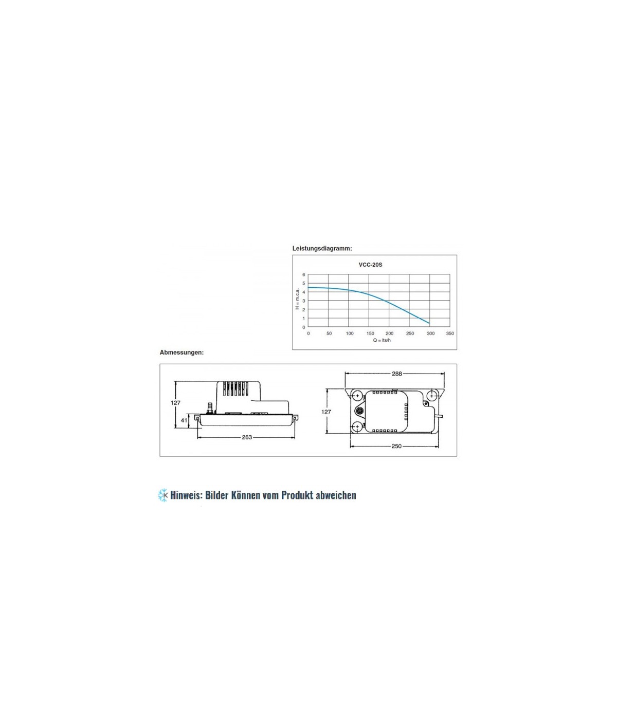 Die Kondensatpumpe VCC-20S ist optimal zur Kondensatentsorgung in Klimaanlagen und Lüftentfeuchtern.