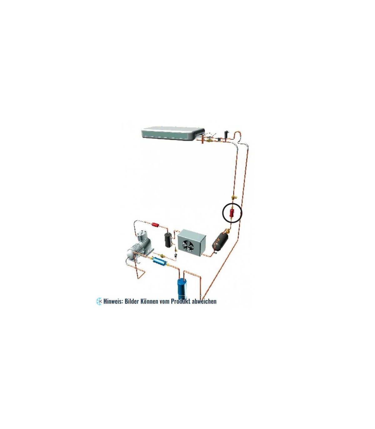 • Der Trocknersammler stellt einen permanenten Vorrat an getrocknetem und filtriertem Kältemittel zur besseren Versorgung des Expansionsventiles, unabhängig von den Betriebsbedingungen, bereit.