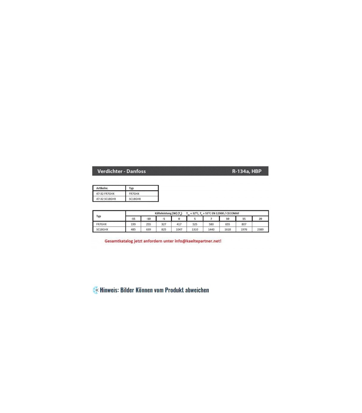 Kompressor DANFOSS SC15DL MBP/HBP - R404A, R507 220-240V/50Hz für kompakte Gewerbekälteanwendungen.