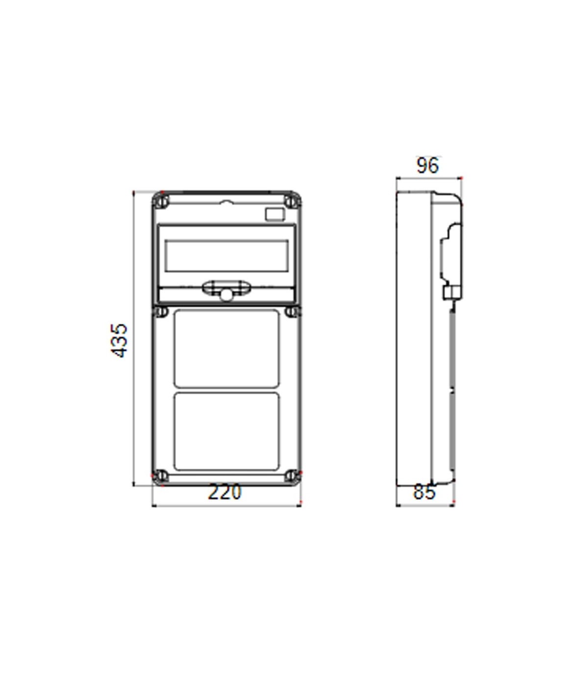- Anzahl der aufnehmbaren Steckdosen: 2 horizontale IB 16/32 A SBF IP44 übereinanderliegend