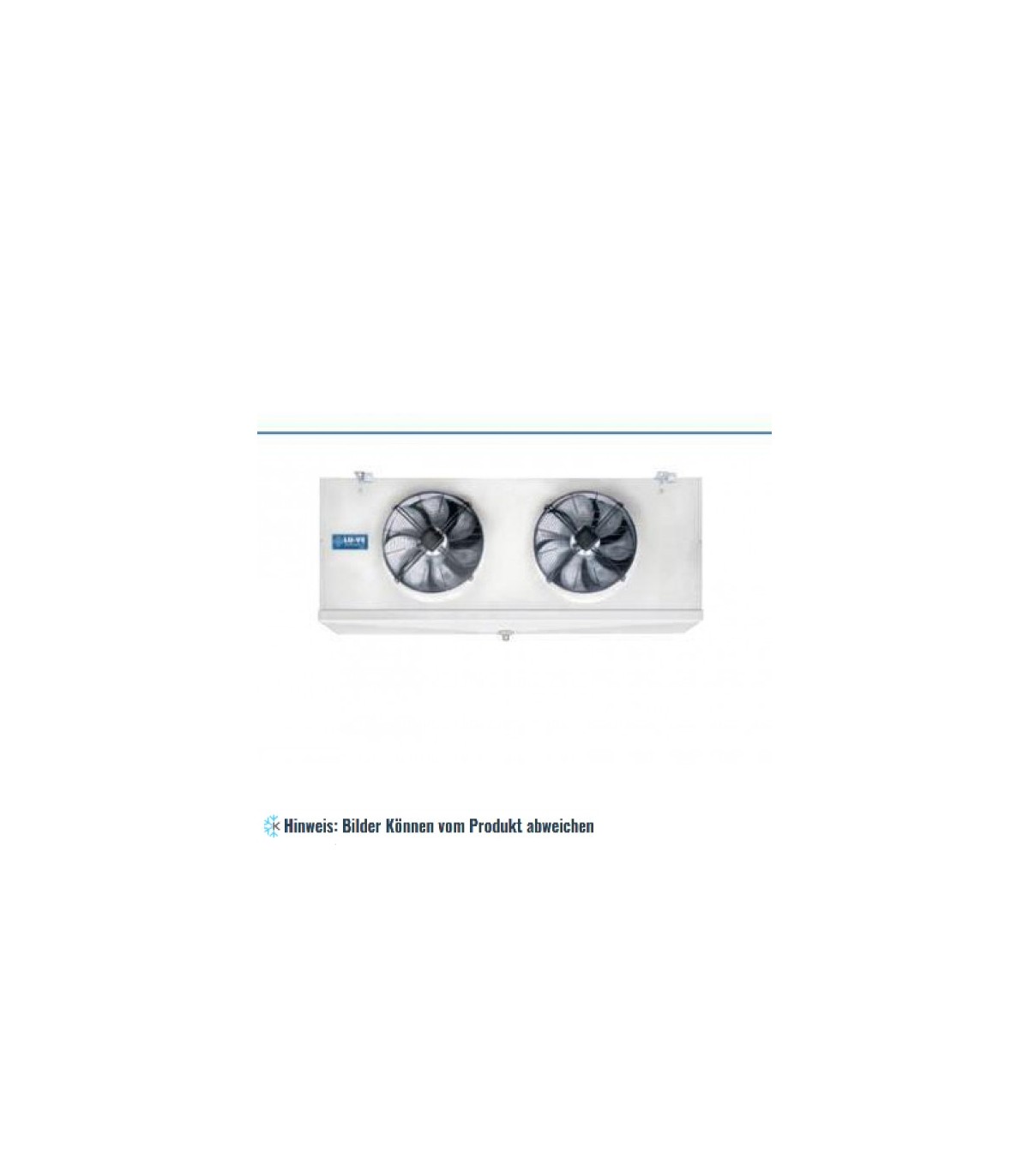 Verdampfer (Luftkühler) LU-VE F45HC1208E6 mit elektrischer Abtauung ist für Kühl- und Gefrierräume geeignet. Lamellenabstand: 6 mm. Leistung bei 10°C: 19910 W. 2 Lüfter: D=450 mm. Luftstrom: 10400 m³/h. Wurfweite: 30 m. Fläche: 63,3 m². Stromverbrauch Abtauung: 9400 W. Abmessungen: 2085x1630 mm. Batterienanschlüsse: 16 mm (Eingang), 42 mm (Ausgang). Netzspannung: 230V/1F/50-60Hz
