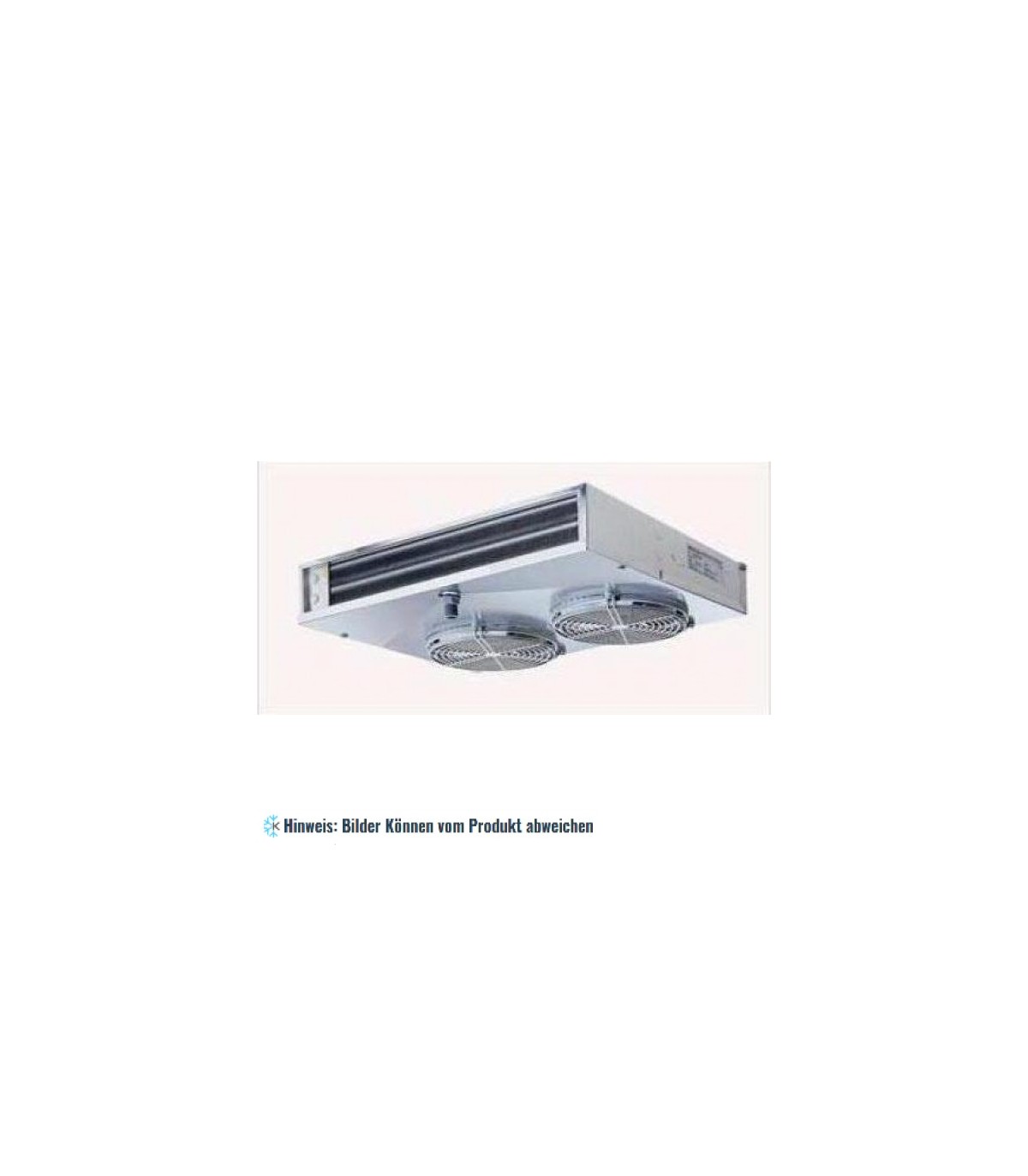 Deckenluftverdampfer (Luftkühler) Rivacold RS4380 (R22, R134a, R404A, R507). Betriebstemperaturbereich: +12°C bis -35°C. Lamellenabstand: 3,5-7 mm. Leistung: 2360 W. 4 Lüfter d=200 mm. Luftstrom: 784 m3/h. Wurfweite: 2,5 m. Fläche: 9,1 m2. Anschlüsse: 1/2” (Eingang), 16 mm (Ausgang). Tauwasserabfluss: 1/2”. Netzspannung: 230-240V/1F/50-60Hz.