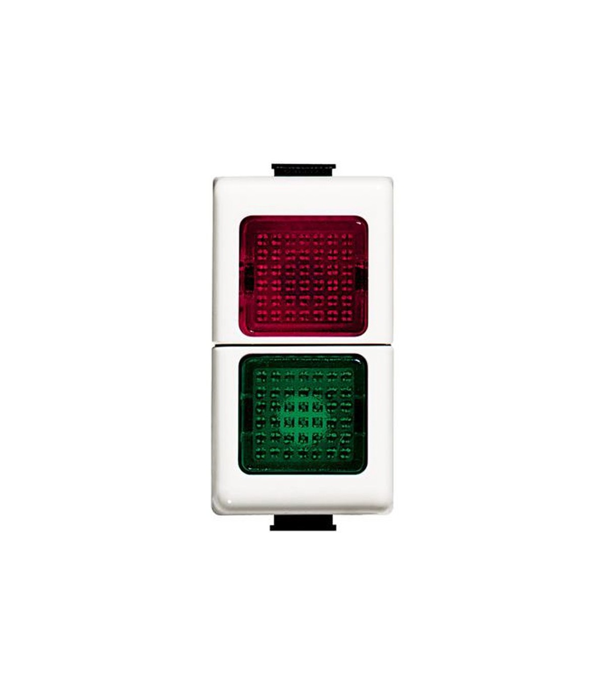 Bticino Matix doppelter Lichtdiffusor in grün und rot, Gehäusefarbe weiß, Spannung 24 Vac, Leistung 1W, 1 Modul. Zu vervollständigen mit den LEDs LN4742V12T und LN4742V230T.