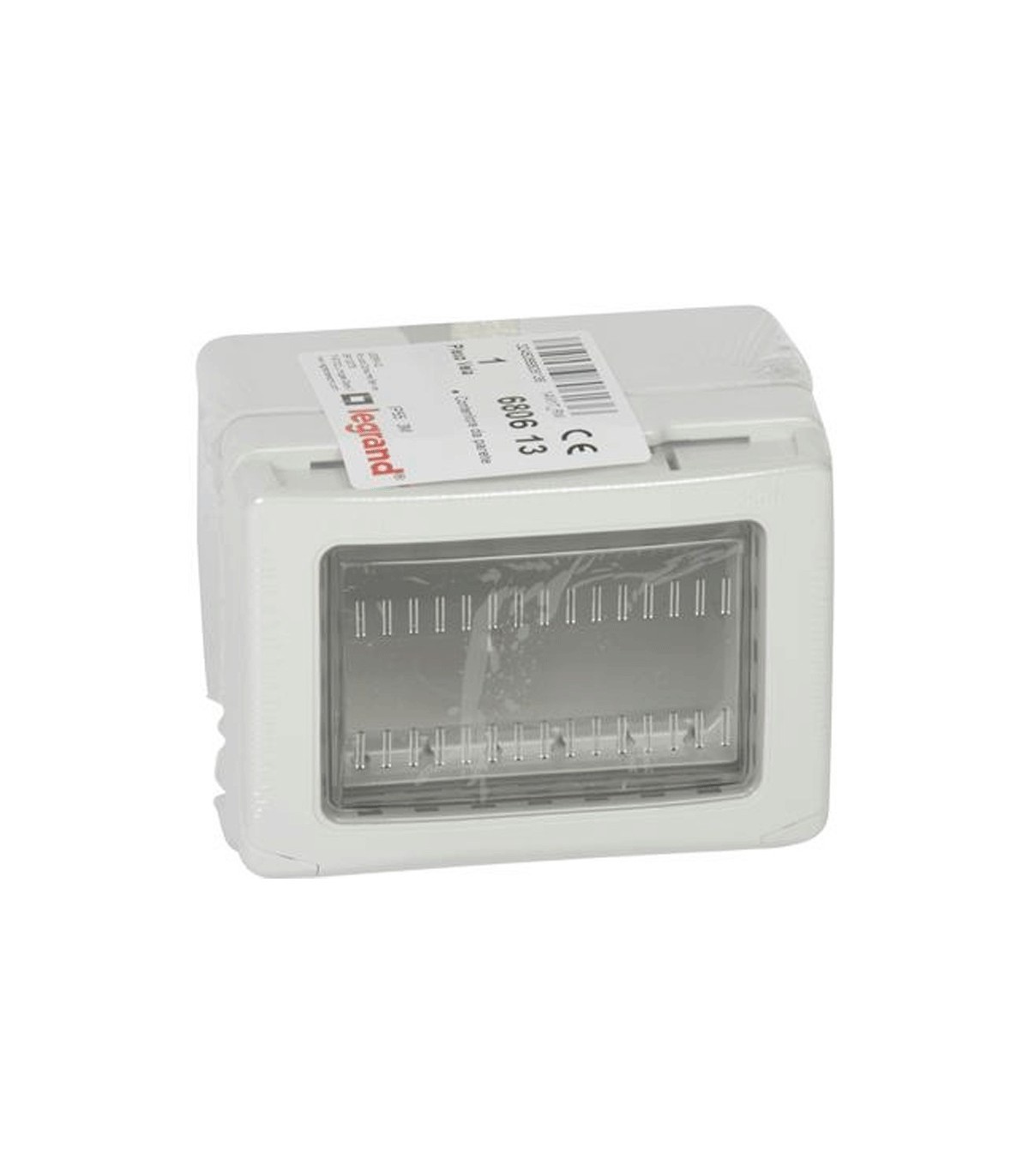 Außenwandgehäuse Legrand Vela, mit Klappe (wetterfest), 3 Plätze (Module). Schutzart IP55.