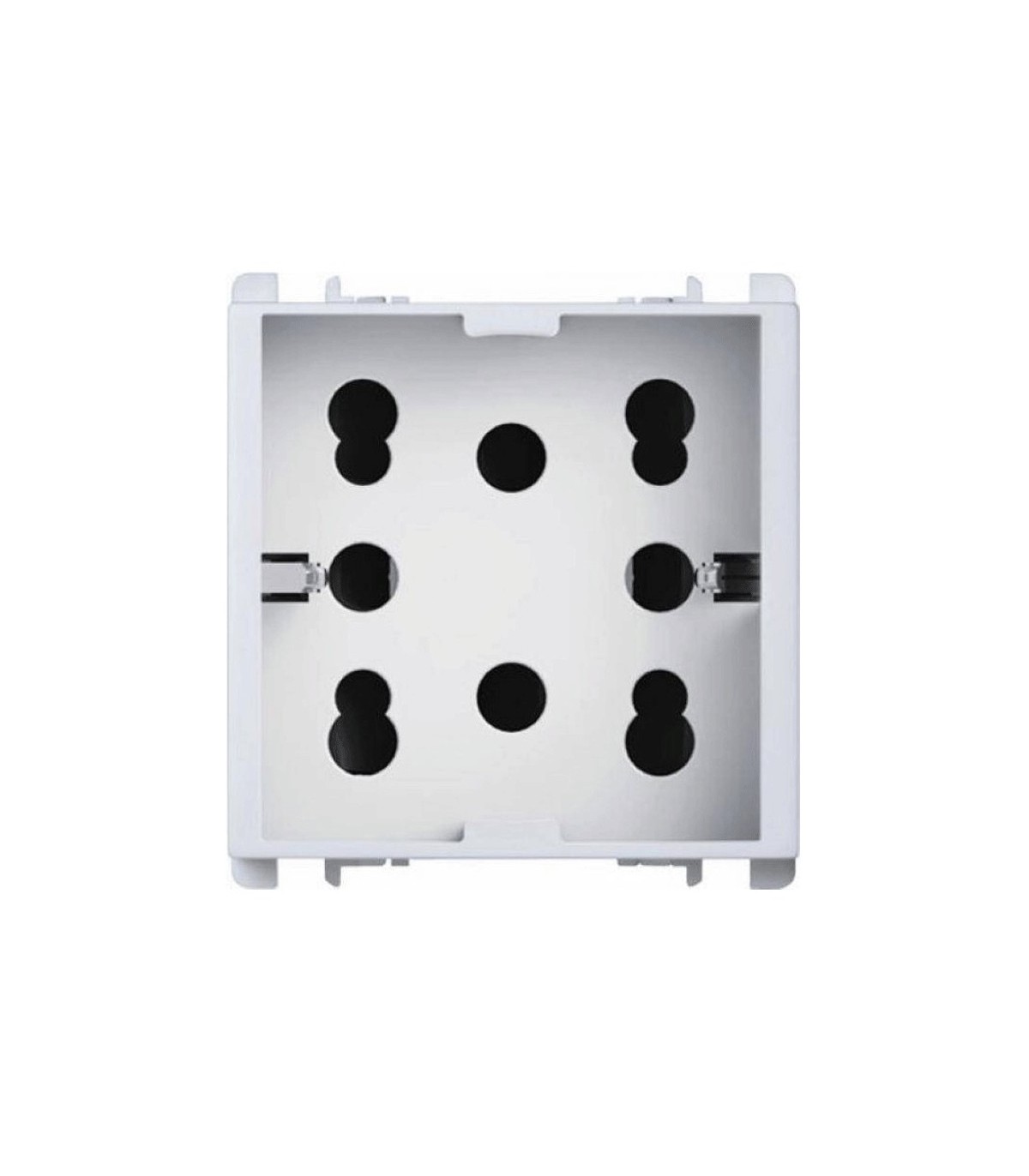 Multistandard-Steckdose 2P+E 16A-250V Simon Urmet Nea, mit zwei Doppelsteckdosen und einem Schuko, 2 Module, weiß. Anzuwenden auf Stützen 10702N.G,10703N,10704N,10706N,10707.