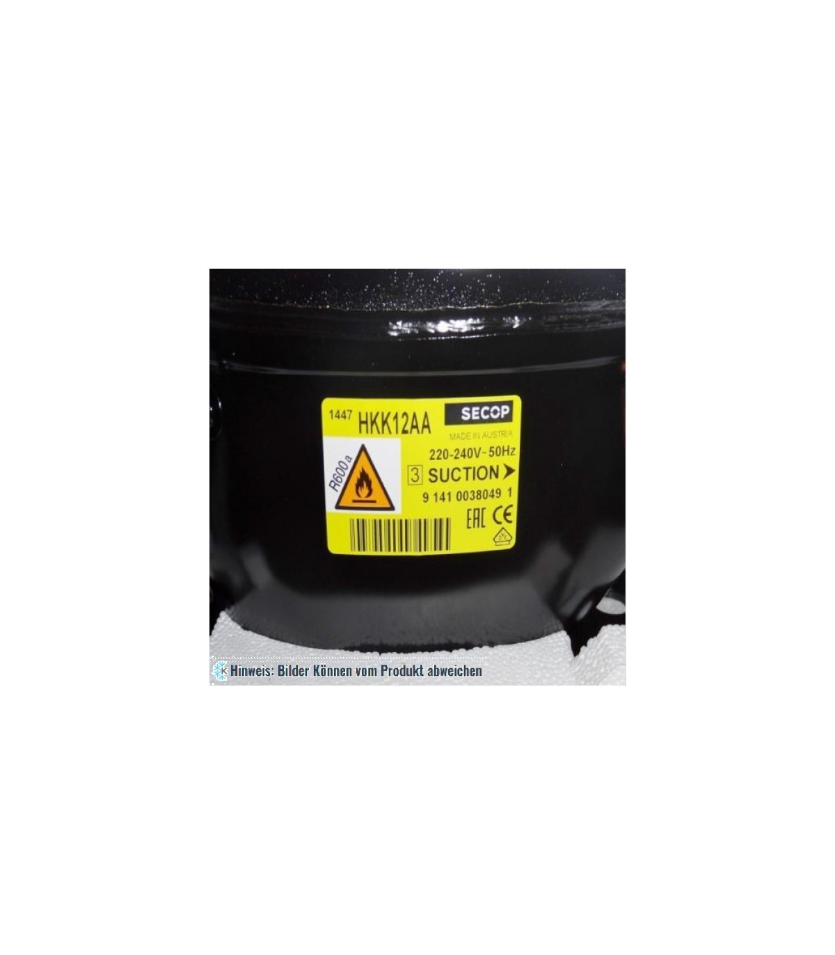 Kompressor ACC Cubigel - HKK12AA, LBP - R600a, 11,2cm3, 220-240V. Verdampfungstemperaturbereich: LBP. Hubvolumen: 11,20cm3. 220-240V, 1/5hp. Kälteleistung: Ashrae (-23,3°C): 198kcal/h, Cecomaf (-25°C: 149W. Kapillarrohr- / Expansionsventilbetrieb. 50Hz.