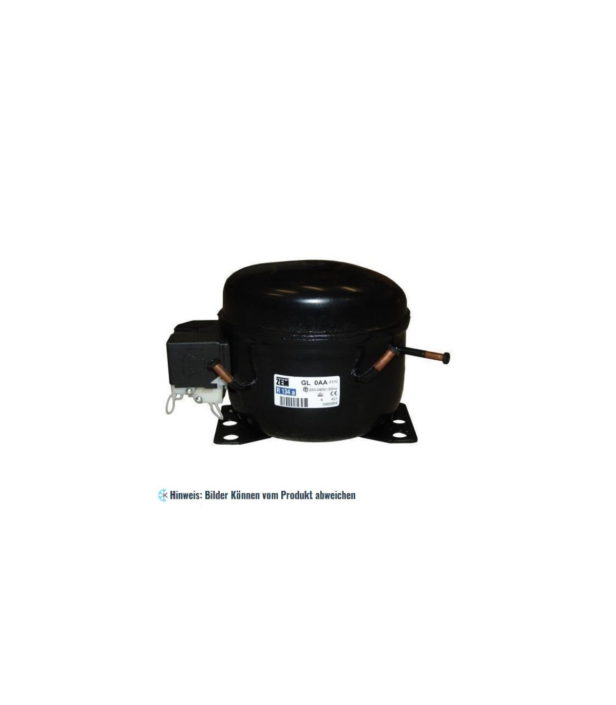 Hermetischer Verdichter Electrolux-ZEM GL90AA, LBP - R134a. LBP Temperaturbereich: -35 bis -10°C. Max. Umgebungstemperatur: 43°C. Motortyp: RSIR. Leistung: 1/4 PS. Hubvolumen: 9,08 cm3. Hubraum: 1,57 m3/h. Kälteleistung:346 W. Drehzahl:2900 RPM. LRA: 12,8 A. Einspritzung: Kapillarbetrieb. Versorgungsspannung: 220-240V/1F/50Hz.