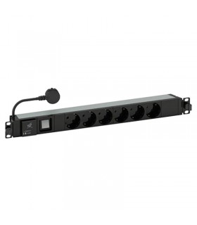 Symbolleiste power-Bticino-PDU 19" mit 6 steckdosen und schalter, mit überspannungsschutz für die stromversorgung der geräte aktiv.