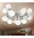 Hängeleuchte mit Gestell aus Metall chrom. Verbindungselemente beliebig drehbar. Lichtverteiler aus weißem geblasenem und geätztem Glas.