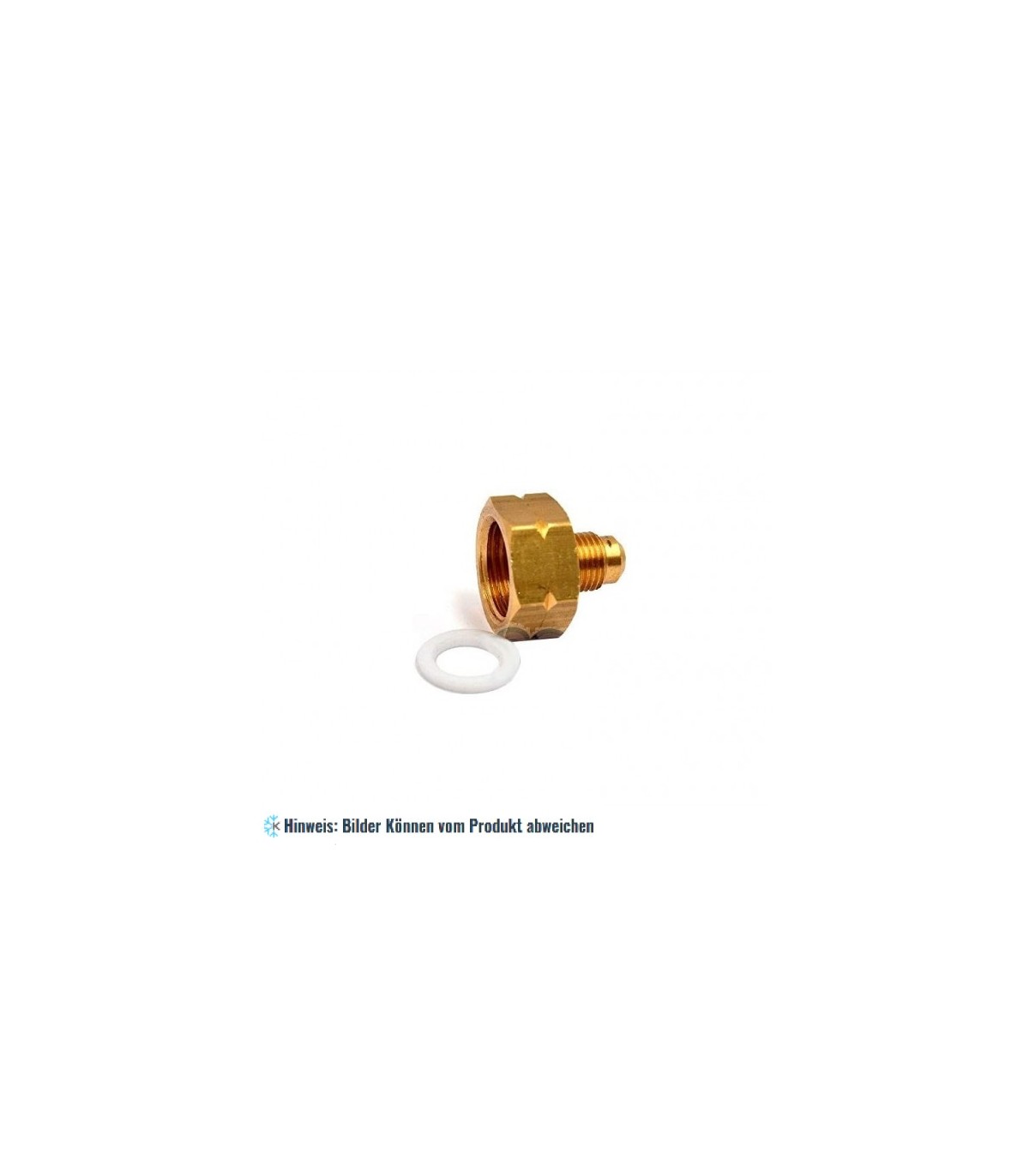 Adapter für Kältemittelflasche, R32, 1/4" x 21,8 links Gewinde für größere Behälter ab 12 L