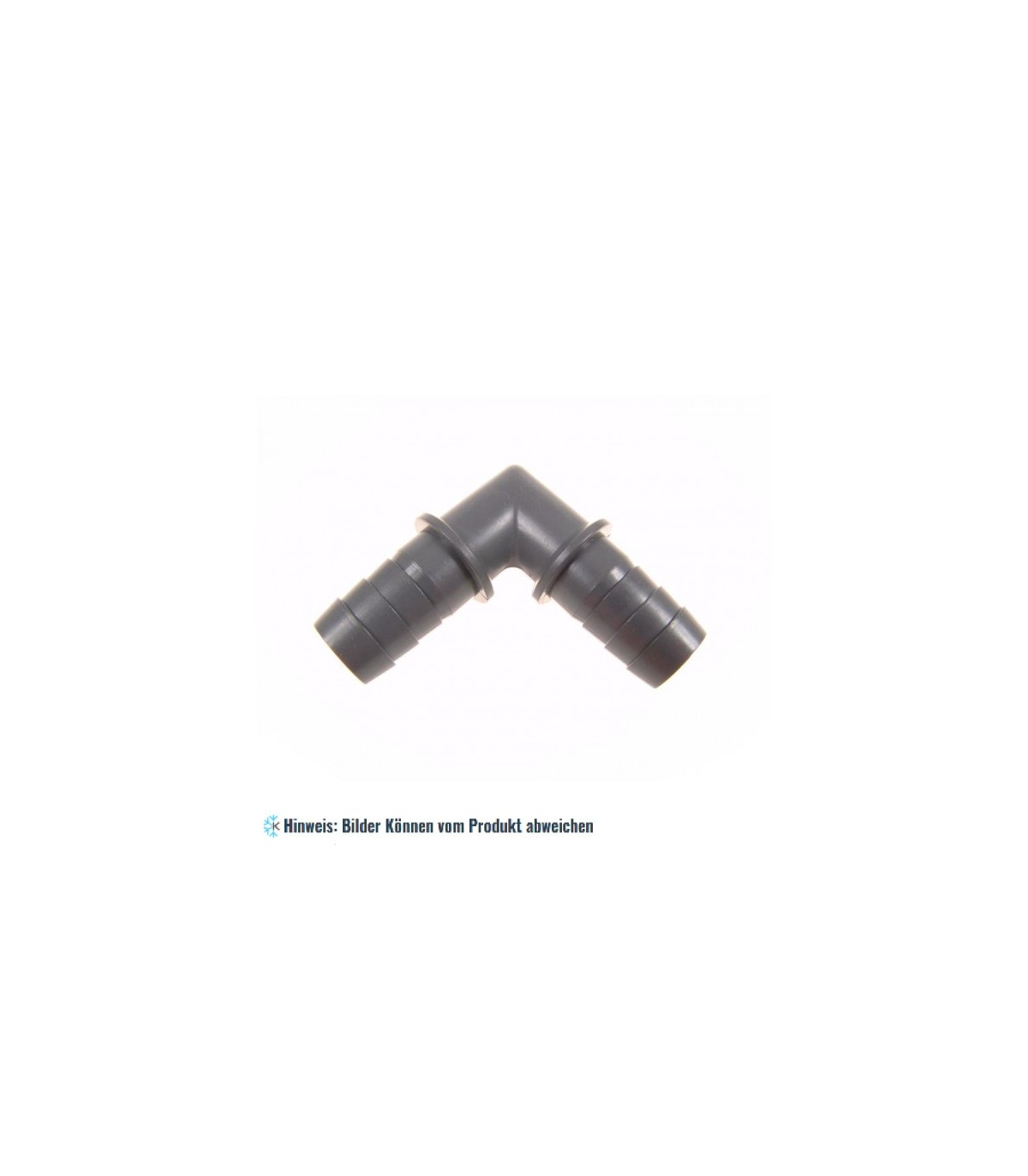 Ablaufschlauch Kupplung 21 x 21 mm, 90 Grad-Krümmer, Doppeltülle ist aus Kunststoff gefertigt.